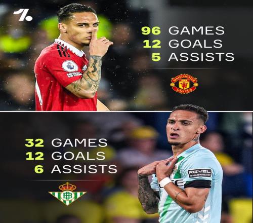 雷速体育10月19报道 根据统计,安东尼在贝蒂斯32场比赛参与的进球数,已经超越了此前他曼联生涯96场比赛的数据...