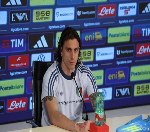 在科维尔恰诺集训基地备战世界杯预选赛附加赛期间,意大利后卫卡拉菲奥里出席了新闻发布会,本文为新闻发布会的...