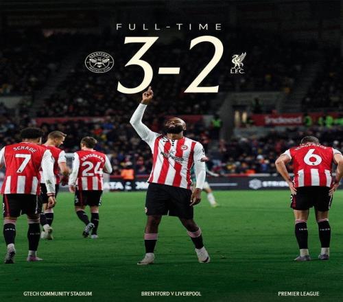 至此,利物浦客场2-3不敌布伦特福德,遭遇英超4连败,9轮积15分跌至联赛第6,被死敌曼联反超!