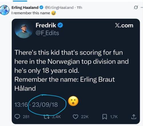 哈兰德翻出8年前帖子,当时已有球迷预测他将有大发展